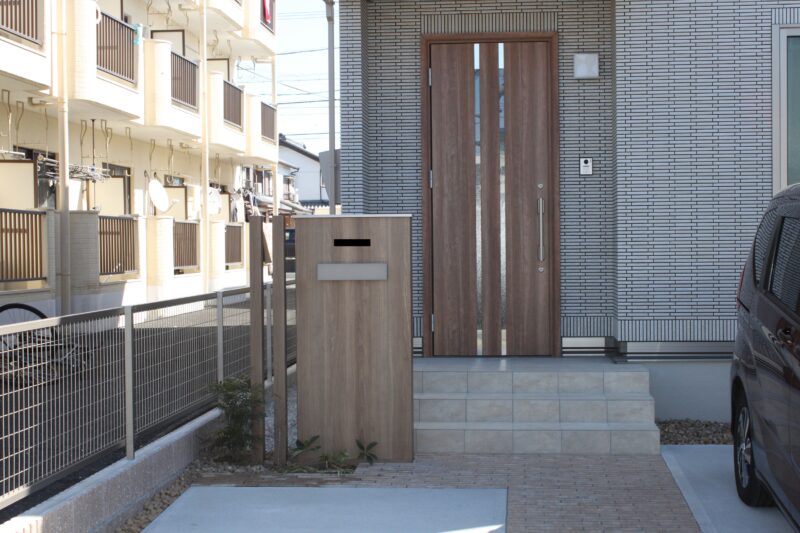 機能門柱FKは、コンパクトな壁にポスト・サイン・照明が付き、限られたスペースでもスッキリと納まります。本体壁のカラーからポスト・サイン・照明の種類まで豊富なので、お施主様好みの機能門柱が仕上がりました。