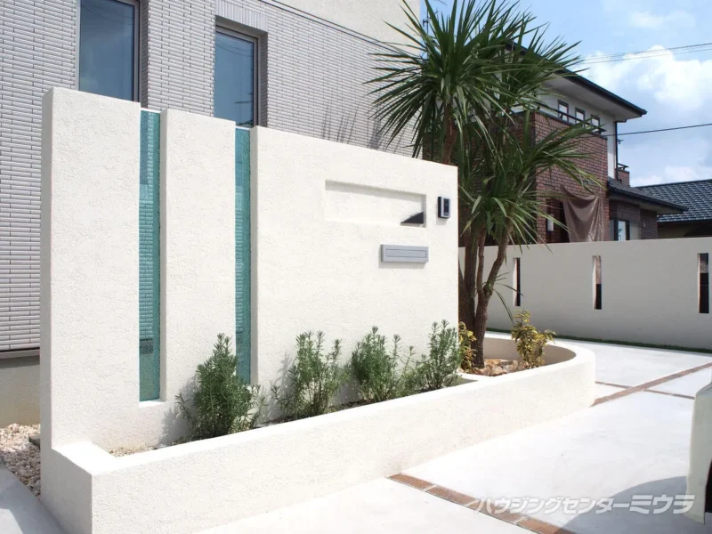 存在感のある、ココスヤシとドラセナ。白で統一した爽やかな南国リゾートに。お客様の想いを叶える外構が完成しました。