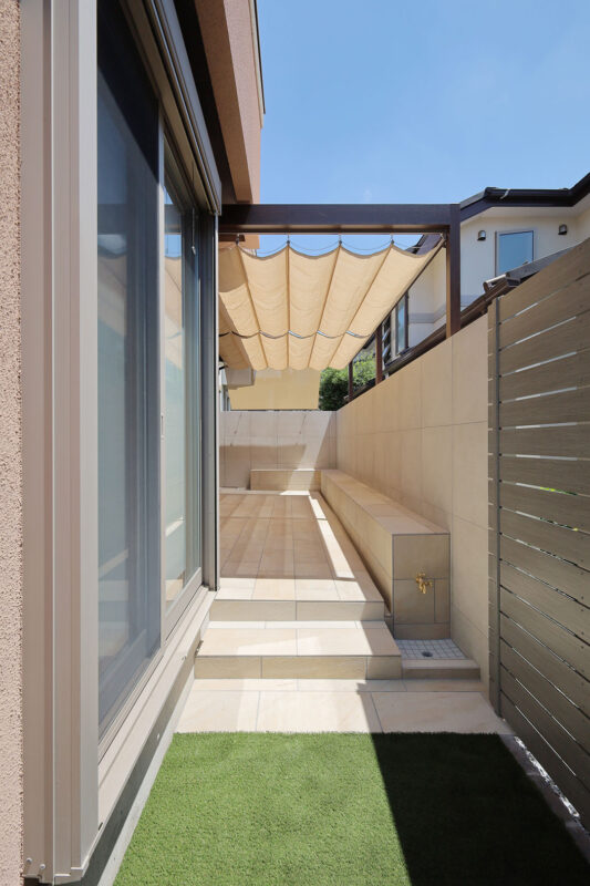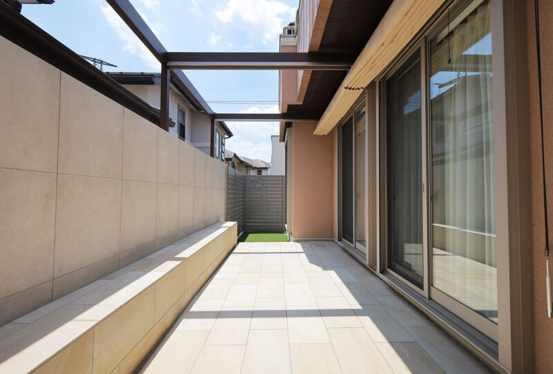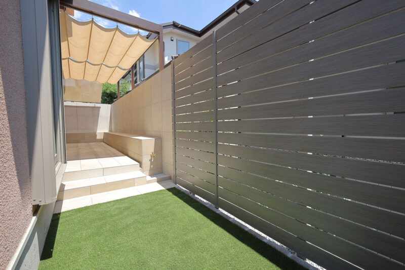 「タイルのテイストが好き」「雑草の悩みから解放されたい」そんなご要望を頂き実現した、プライベート感あふれるテラスガーデンです。お手入れが大変なお庭が、お孫様と夏のプール遊びを楽しみ、もうひとつのリビングのように寛ぐ、そんな暮らしを彩る場所として生まれ変わりました。
