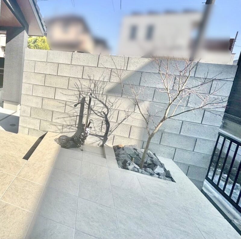 土留めのブロックは馬積みにすることでよりスマートな印象に。