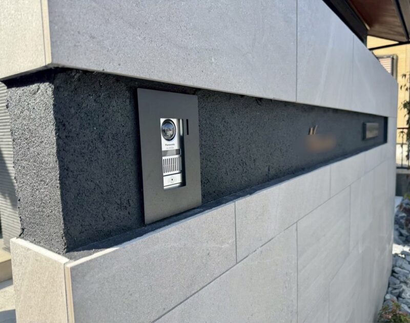 お宅のお顔となる門柱にはEXUALIVE商品のノルディックストーンを使用。