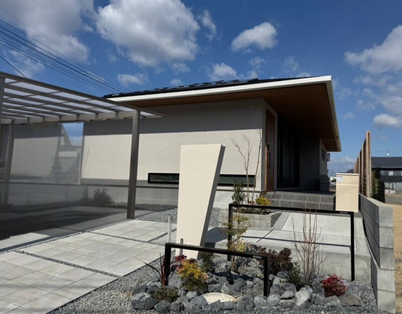 デザイン性のある門柱は、外構のアクセントの要素になります。シンプルでスタイリッシュな住宅にぴったりの、エクステリアデザインです。