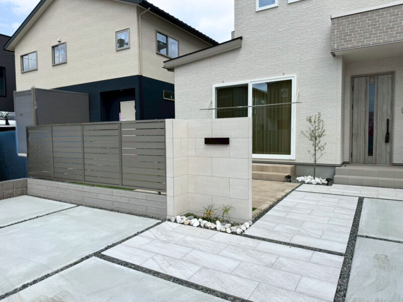 シンプルモダンな住宅に合わせて、外構もすっきりとしたデザインで統一しました。
