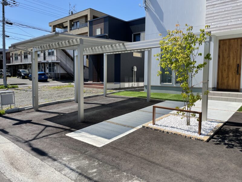 カーポートの屋根を採光パネルにすることで、より明るく爽やかな外観になりました。